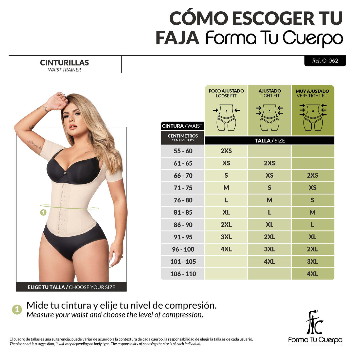 Cinturilla Colombiana con Mangas : Waist Trainer con Posture Control ( Ref. O-062) - 4XS / Beige